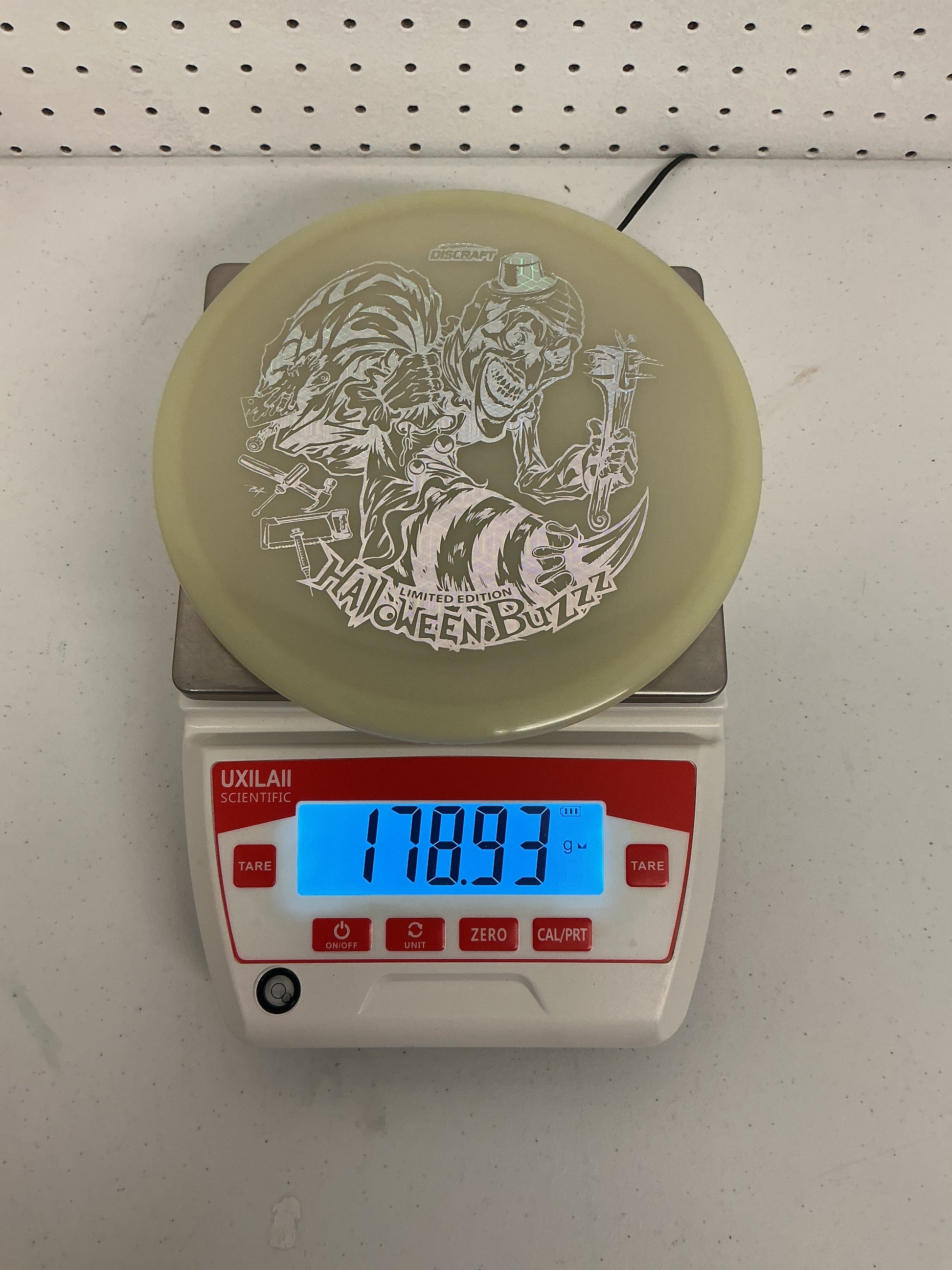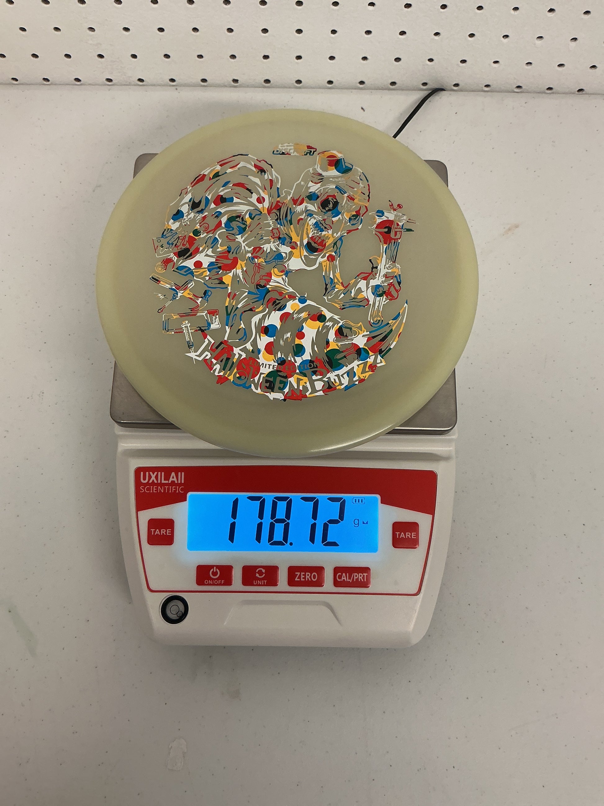 The Single-Foil Mega-Glo Halloween Buzzz turns darkness into its stage. Made from our popular Mega-Glo blend, this disc shines brighter and longer than any glow disc we’ve ever made. A minimalist single-foil stamp lets the unsettling clown artwork glow through the night—perfect for glow leagues or collectors seeking the most luminous Halloween Buzzz to date!