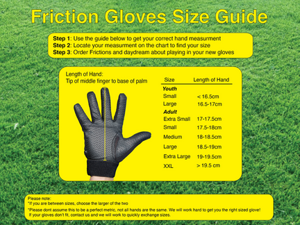 Friction DG's are the first disc golf specific glove. Like Friction ultimate gloves, rubberized palms and fingers give you a great grip on the disc in any condition. Grip on the throwing fingers provide touch on both drives and putts. Friction DG's allow you to have a great grip on the disc in cold, wet, or humid conditions. They are a small investment to both be comfortable on the course and have a consistent grip on the disc.