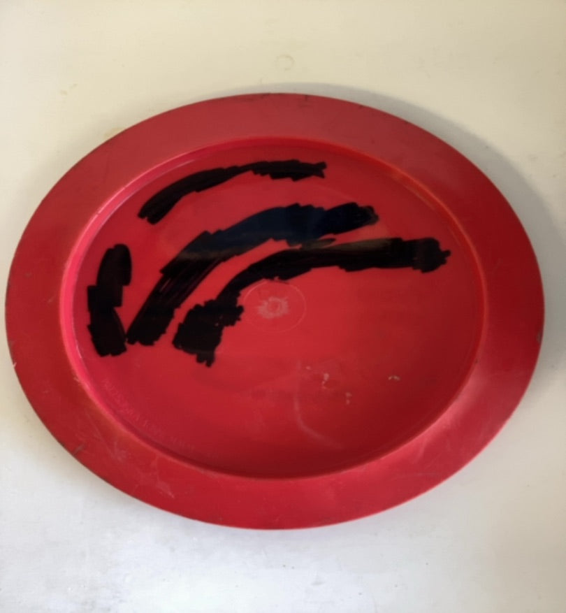 Condition: 6/10 — This disc has heavy black marker ink on the bottom flight plate, covering a significant portion of the surface in multiple thick overlapping strokes. Per our grading system, heavy ink caps condition at 6. The top of the disc is clean with a sharp, well-defined factory stamp. The rim shows no damage, gouges, or road rash. The disc is structurally sound and will fly true to its rated flight numbers.