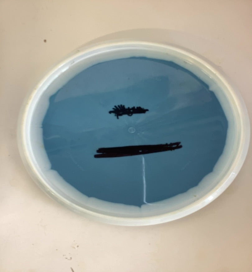 Condition: 6/10 — This disc shows typical used wear with surface scuffing on the bottom. Two black marker marks are present on the bottom of the disc — one smaller clustered mark and one large solid bar mark. The rim is structurally sound with no significant gouges or chunking. This disc is flight-ready and will perform true to its intended neutral flight path.